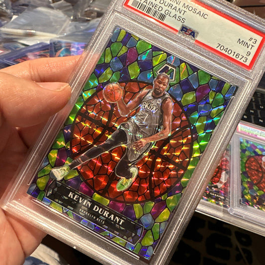 2020 Panini Mosaic Kevin Durant #3 STAINED GLASS "Case Hit" PSA Mint 9