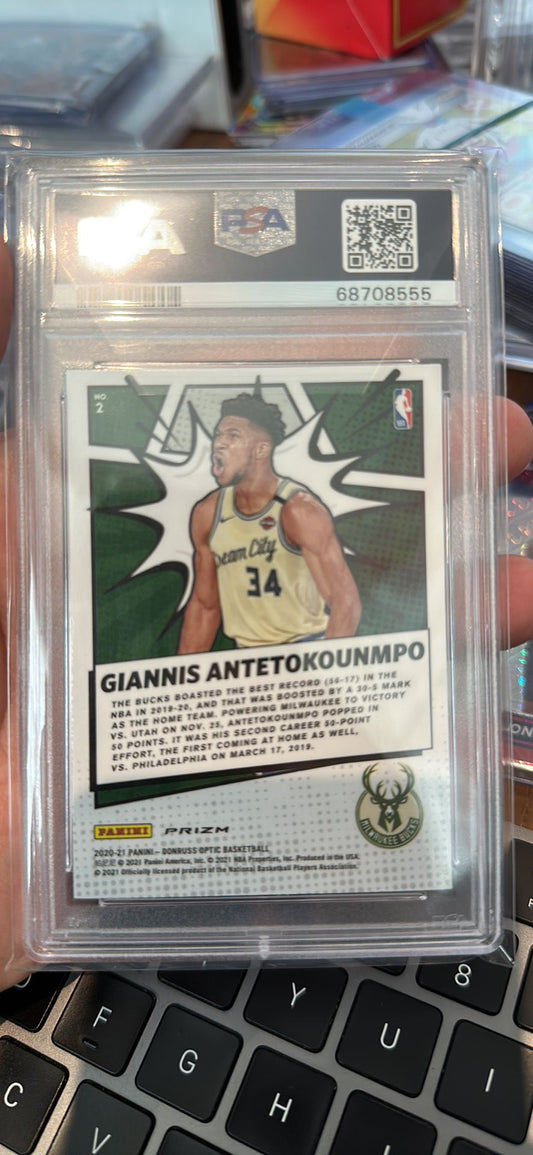 2020 Panini Donruss Optic My House! 2 Giannis Antetokounmpo purple Prizm PSA 10 GRADED