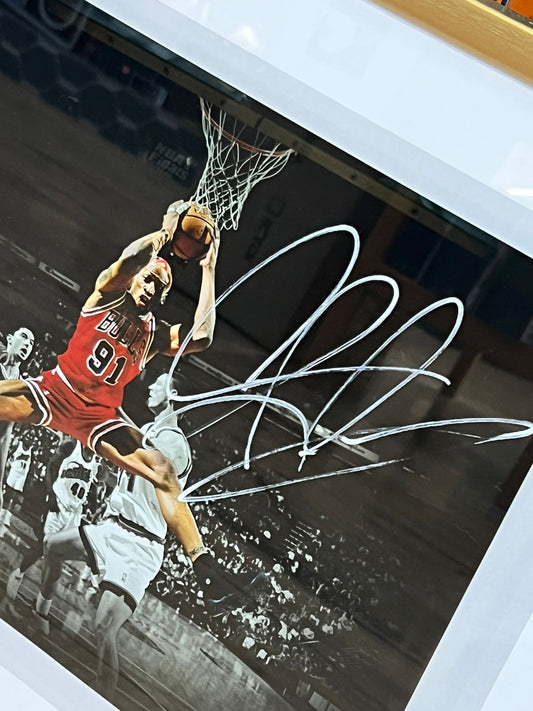 Denis Rodman signed 1996 NBA finals photograph (framed) 16 x 20 inches