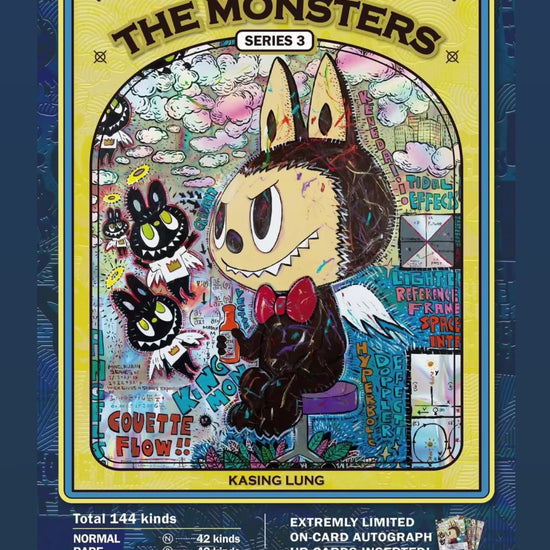 The Monsters Series 3, continuing the beloved collectible trading card saga by artist Kasing Lung. Building on Series 1 and 2, Series 3 introduces brand-new The Monsters sketches and paintings, Ultra Rare cards, and on-card Autograph UR cards designed to thrill collectors and fans alike.